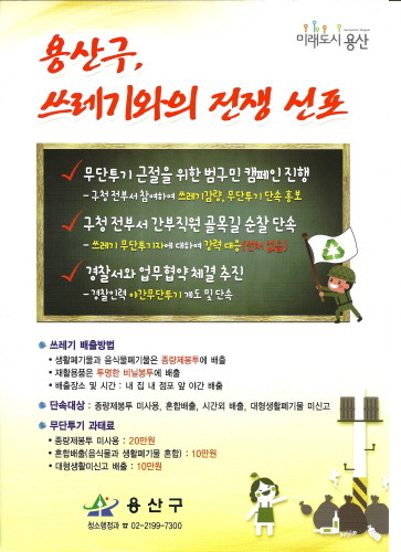 용산구는 27일 365일 청결도시 만들기를 목표로 생활쓰레기 감량과 무단투기 근절을 위한 대대적인 캠페인을 진행한다고 밝혔다.