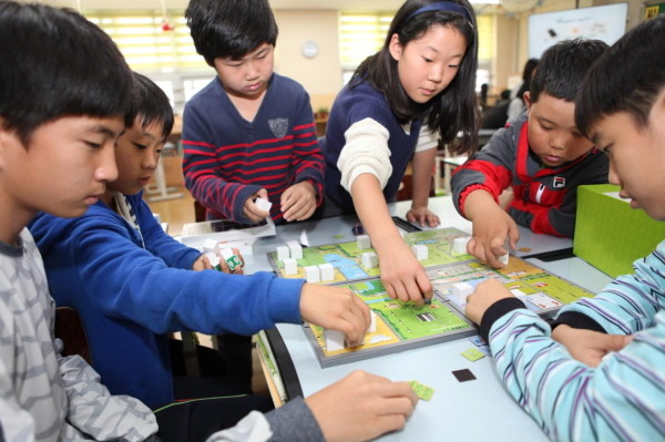 기후변화 교육키트를 활용한 학교방문 수업은 약 80분간 1, 2교시로 나누어 진행되는데, 1교시에는 간단한 시청각교육 후 보드게임을 통해 기후변화의 원인 및 현상을 인지할 수 있도록 하고, 2교시에는 직접 친환경 마을을 건설해 친환경에너지를 마을에 공급하는 과정을 직접 체험하는 학습이 진행된다.
