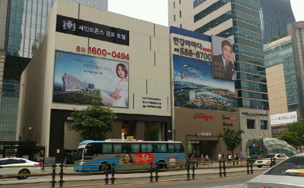 서울 서초구 강남로 주변 모델하우스의 대형 광고 현수막이 이곳을 지나는 사람들의 눈살을 찌푸리게 하고 있다.