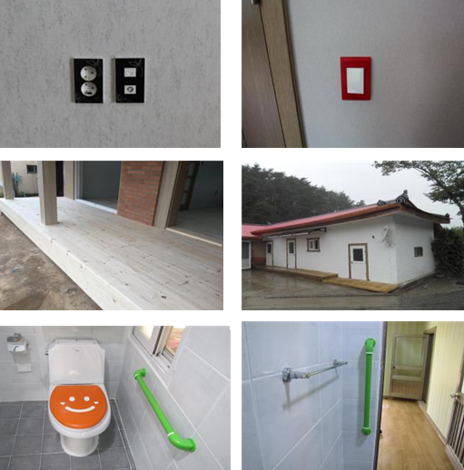 인지건강 주거환경 디자인에 따라 전등 스위치와 전기 콘센트는 쉽게 알아볼 수 있도록 벽지와 대비되는 색을 입혔고, 전등은 조도가 높은 LED 조명으로 교체했다.