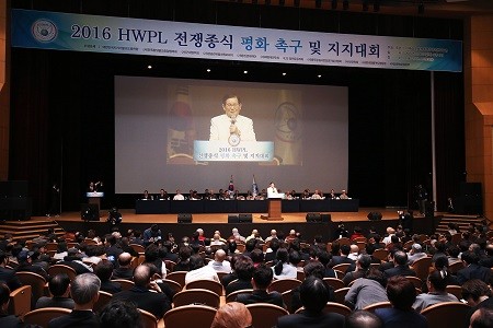 하늘문화세계평화광복은 24일 오후 2시 서울 삼성동 코엑스 오디토리움에서 ‘2016 HWPL 전쟁종식 평화 촉구 및 지지’ 대회를 열었다.