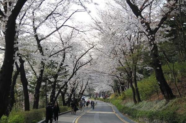 남산의 벚꽃길은 왕벚나무와 산벚나무가 줄지어 있는 남산둘레길 북측순환로와 왕벚나무가 자생하는 남산도서관 앞 남측순환로가 가장 유명하다.
