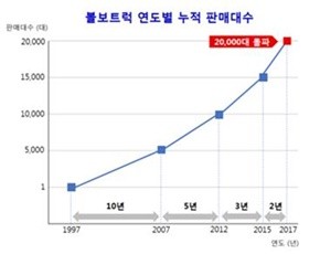 올해로 국내 판매 20주년을 맞이한 볼보트럭코리아는 1997년 1호차 출고를 시작으로 10년만인 2007년에 5000호, 5년이 지난 2012년에 1만호, 그리고 이후 3년 만인 2015년 10월에 1만5000호 차량을 출고하며 지속적인 성장세를 보였다.
