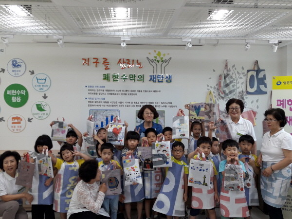 먼저 2층 체험장에서 ▲폐현수막 재활용 과정에 대한 설명을 듣고 ▲폐현수막 재활용 가방에 그림을 그려 직접 제품을 완성해 본 다음 ▲지하 1층으로 내려가 폐현수막 재활용 사업장을 견학하게 된다.