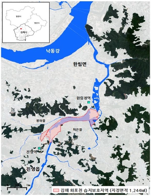 환경부는 김해시 진영읍 설창리와 한림면 퇴래리 일대의 화포천 습지(지정면적 1.24㎢)를 습지보호지역으로 23일 지정한다고 22일 밝혔다.