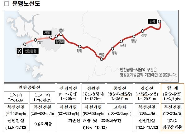 또 평창 동계올림픽 기간 수송 수단 역할은 물론 주말·명절 시 강원권 도로 정체 해소에도 크게 기여할 것으로 전망된다.
