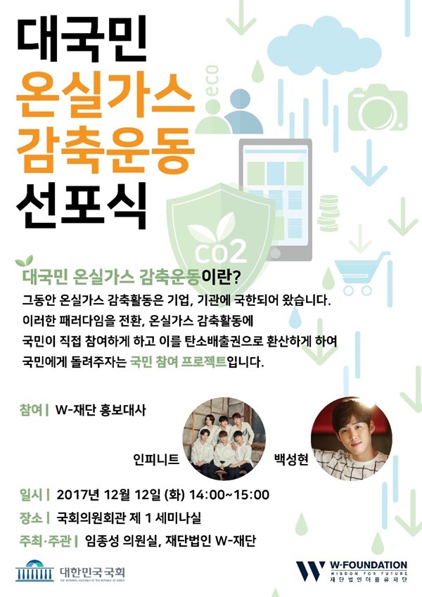 특히 대국민 온실가스 감축운동 소개와 함께 가수 인피니트, 배우 백성현을 홍보대사로 위촉하는 순서도 가질 예정이다.