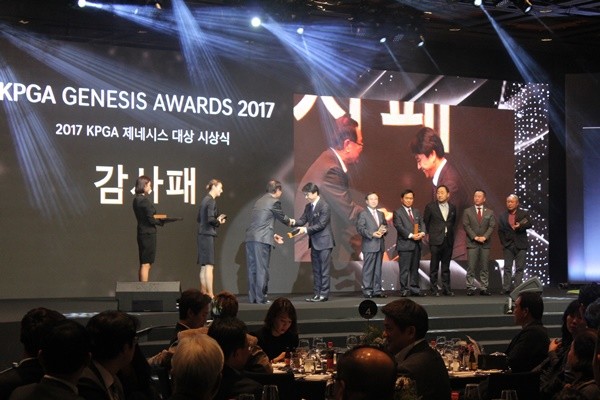 이번 감사패 수상은 지난 9월 세계 최초로 온·오프라인 ‘티업 지스윙 메가 오픈 presented by 드림파크CC’를 성공적으로 치러 한국남자프로골프대회의 발전에 기여한 공로다.