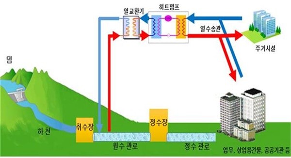 수도 관로 속의 물을 건물의 냉난방 에너지원으로 활용하면 여름철에는 건물 내부의 열을 대기보다 낮은 온도의 물로 방출해 실내 온도를 낮출 수 있고, 겨울철에는 대기보다 높은 온도의 물에서 열을 얻어 실내 온도를 높일 수 있다.