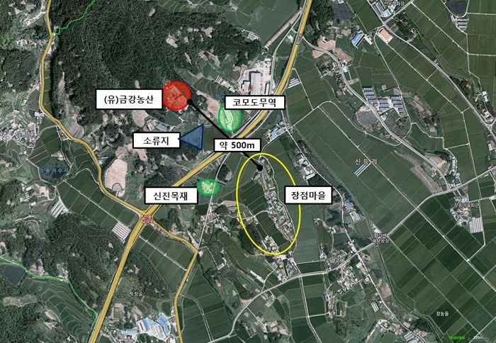 익산시 장점마을은 마을 인근의 유기질비료 제조공장에서 악취가 나는 등 오염물질이 주민건강에 영향을 미치는 것으로 추정된다.