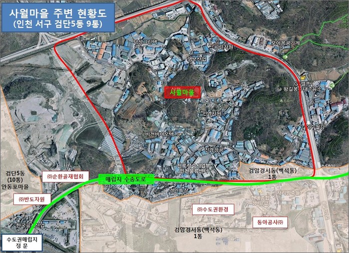 인천시 사월마을은 그간 순환골재공장 등 폐기물처리업체 28곳을 비롯해 소규모 제조업 등 각종 공장이 난립한 지역이다.