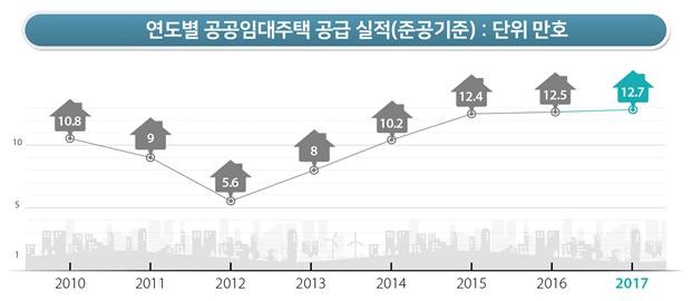 지난해 공급된 공공임대주택은 총 12만7000가구로 당초 목표(12만 가구)보다 7000가구 초과 달성한 것으로 나타났다.