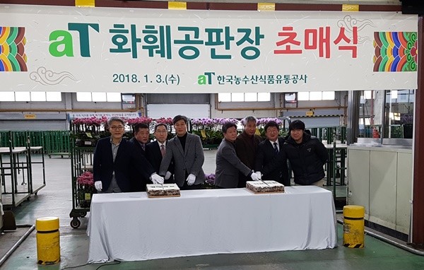 aT 화훼공판장은 3일 오전 서울 양재동 화훼공판장에서 새해 첫 경매의 시작을 알리는 ‘2018년도 화훼공판장 초매식’에서 역대 최고액인 1120억 원을 새해 경매목표로 발표하고 힘찬 출발을 다짐했다.