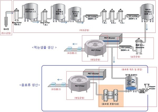 다만, 먹는샘물의 품질관리를 위해 음료류의 배합 및 병입 공정 설비는 먹는샘물 제조설비와 구분된 공간에 별도로 설치 및 관리하도록 시행규칙을 개정해 시행 중에 있다. 이는 식품 또는 식품첨가물이 먹는샘물에 혼입되는 것을 방지하기 위해서다.