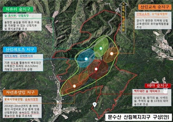 이번에 지정된 지구는 지자체에서 조성·운영하는 공립 산림복지지구로 ▲강원 동해시(비천 산림복지지구, 148만6053㎡) ▲경북 봉화군(문수산 산림복지지구, 100만㎡) ▲경기 동두천시(동두천 산림복지지구, 91만9616㎡) 등 3개 사업지다.