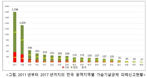 환경부가 신고를 받기 시작한 2014년에는 4월부터 10월까지 신고를 받았는데도 169명(사망 43명)이 신고했고, 2015년에는 752명(사망 84명)이 신고했다.