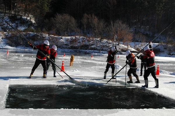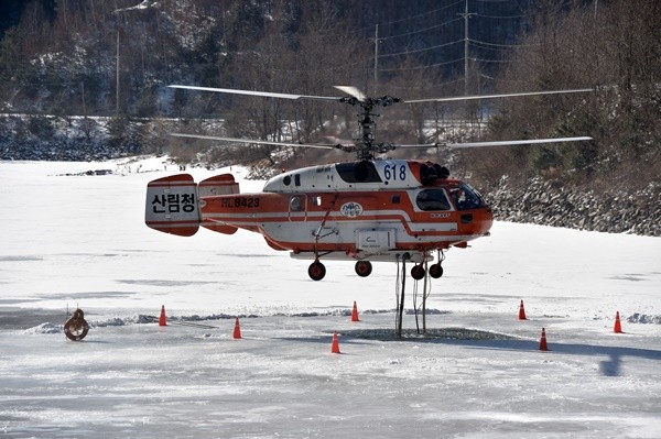 산림청은 계속되는 한파로 전국 대부분의 저수지가 얼어 결빙된 가운데 헬기 담수지 확보를 위해 총역을 기울이고 있다고 7일 밝혔다.