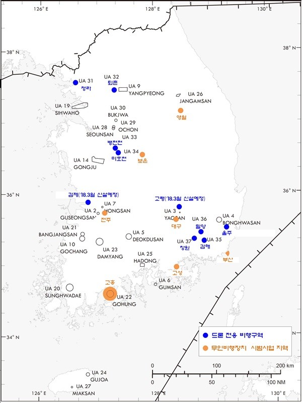 새롭게 지정되는 드론 전용 비행구역의 정식명칭은 ‘UA 39 GIMJE(김제)와 UA 40 GORYEONG(고령)’이다. 공고기간을 거쳐 3월 29일부터 발효될 예정이다.