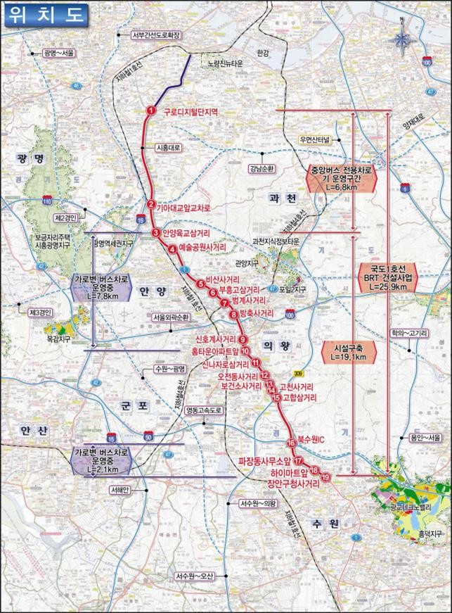 수도권과 부산의 극심한 교통난 해소와 대중교통 활성화를 위해 수원~서울 구로, 부산 내성~송정 구간에 BRT(간선급행버스체계)가 구축된다.