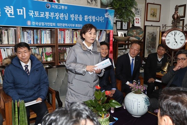 김현미 국토교통부 장관은 지난 13일 대전 대흥동 문화예술의 거리 상가 번영회를 방문해 지역 소상공인들과 간담회를 갖고 이 같이 밝혔다.
