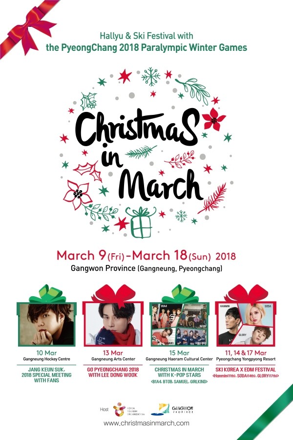 한국관광공사는 강원도와 함께 ‘2018 평창 동계패럴림픽대회’의 붐업 조성과 해외 관광객 유치의 일환으로 패럴림픽 대회 기간인 3월 9일부터 18일까지 10일 간 강원도 강릉과 평창에서 ‘3월의 크리스마스 페스티벌’을 개최한다.