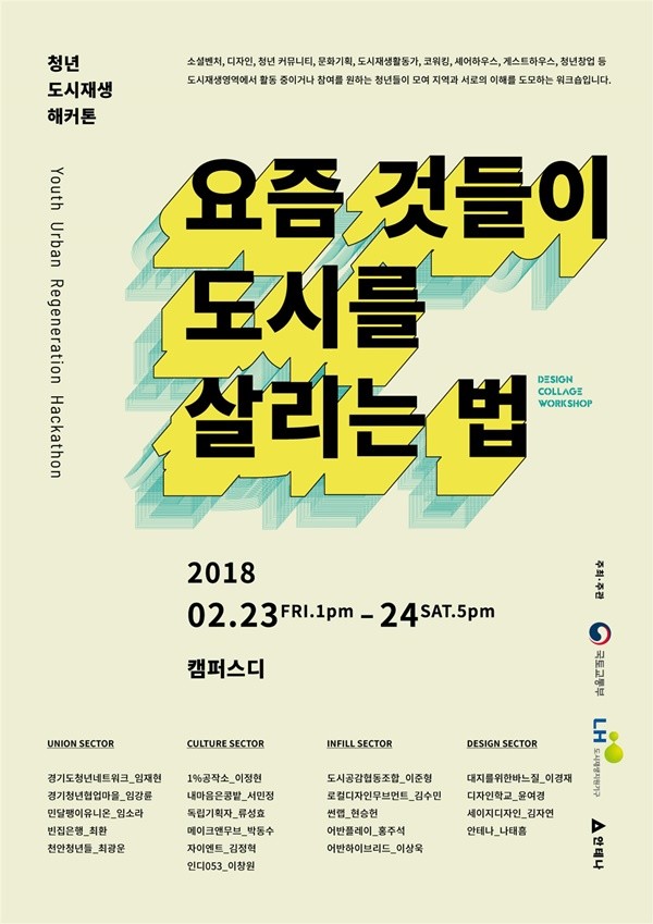 또 이번 행사에는 도시·건축 분야뿐 아니라, 문화·지역행사기획·디자인·지역 내 청년 네트워크 지원·공동체 주택 등 다양한 활동 분야의 청년들이 참여하는 만큼 도시재생 사업의 분야별 종합 네트워크 구축에도 일조할 것으로 기대된다.