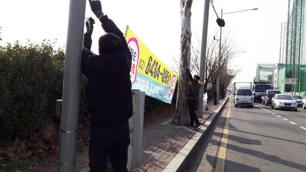 단속원들이 정비 전·후의 증빙사진과 함께 불법현수막을 수거해 오면 1일 10만원, 월 300만원 한도에서 보상해 준다.