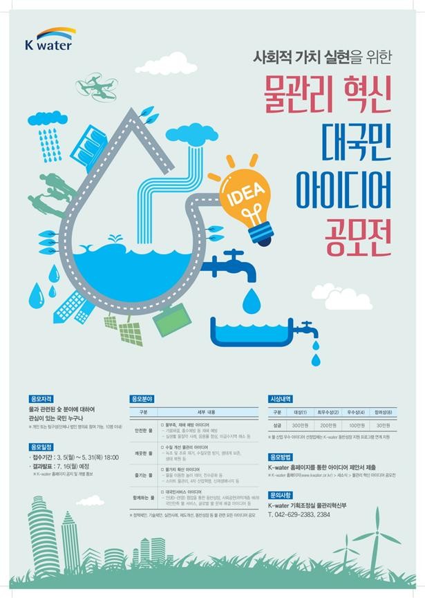 이번 공모는 물 절약에서부터 가뭄과 홍수 예방 등 우리 생활과 밀접한 물관리에 대한 국민의 생생한 목소리를 직접 듣고 이를 경영에 반영해 ‘국민이 체감할 수 있는’ 물관리 혁신을 위해 마련됐다.