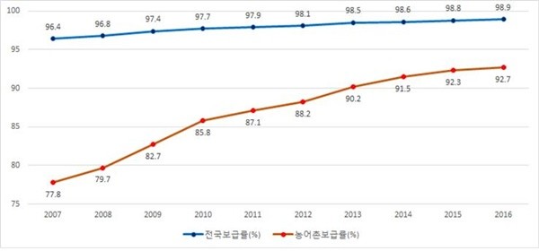 환경부는 2016년 상수도 통계 조사결과 우리나라 상수도 보급률이 98.9%로 주요 선진국 수준에 도달했다고 28일 밝혔다.
