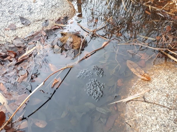 연구진은 올겨울이 예년에 비해 유독 추웠기 때문에 구룡계곡의 북방산개구리 산란이 늦어진 것으로 보고 있다.