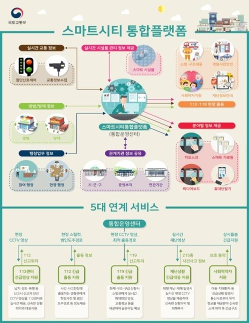 ‘스마트시티 통합플랫폼’은 교통·환경·에너지·수자원 등 각종 도시 인프라에 인공지능과 사물인터넷(IoT) 등 첨단 정보통신기술을 활용하도록 핵심 역할을 하는 기반 소프트웨어를 말한다.