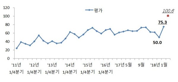 3월 전문건설업 경기실사지수는 지난 달 75.3보다 개선된 100.6으로 전망했다. 건설정책연구원은 동절기가 끝난 계절적 요인과 함께 전년도에서 이월된 부동산 분양물량 등에 대한 기대가 반영된 것으로 분석했다.