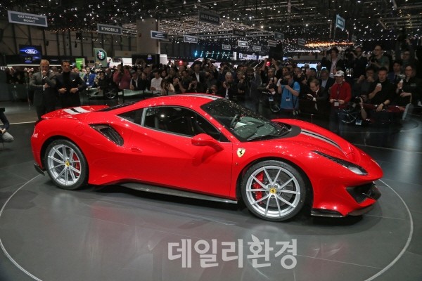 페라리가 '2018 제네바 모터쇼'에서 페라리 488 피스타의 실제 모습을 최초로 공개했다.