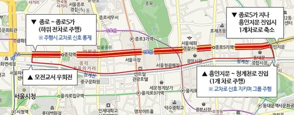 내달 8일 종로1가~5가 내 2.6km ‘자전거 전용차로’가 개통한다.