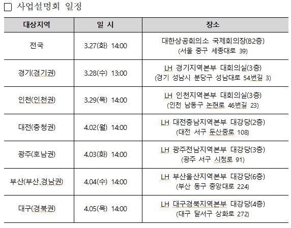 LH는 개선된 사업모델에 대한 이해도 제고 및 사업 홍보를 위한 사업설명회를 오는 27일 서울을 시작으로 전국 7개 지역에서 순차적으로 실시하고 올해 사업을 본격 추진할 계획이다.