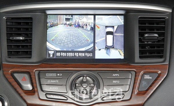 어라운드뷰 모니터는 공중에서 차동차를 내려다 보는 것처럼 영상을 표시해 주차 상황에 안전사고 예방에 큰 역할을 할 것으로 보였다.