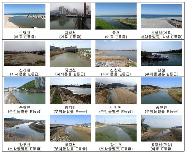 어류의 건강성이 ‘매우 좋음 A’ 등급인 하구는 동명천, 삼척오십천 2곳이며 수렴천, 신명천, 금천, 괴정천 4곳은 ‘매우 나쁨 E’ 등급을 받았다.