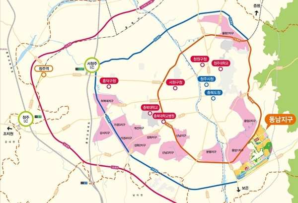 청주동남지구는 충북 청주시 상당구 용정동·방서동 일원에 건설되는 청주지역 최대의 택지개발사업지구다. 약 207만4000㎡, 1만4768가구, 3만6020명을 수용하는 규모로 2019년 12월 준공 예정이다.