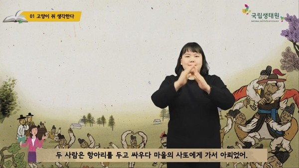 국립생태원은 지난 2016년 발간한 ‘생태 돋보기로 다시 읽는 우리 속담’(이하 우리 속담)을 제38회 장애인의 날(4월 20일)을 맞아 청각장애인들을 위한 수화영상도서로 개발해 관계 기관에 무상으로 보급한다고 밝혔다.