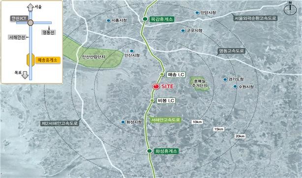 서해안고속도로 매송 IC와 비봉 IC 사이에 위치한 ‘매송 화물차 복합휴게소’가 20일 문을 연다.