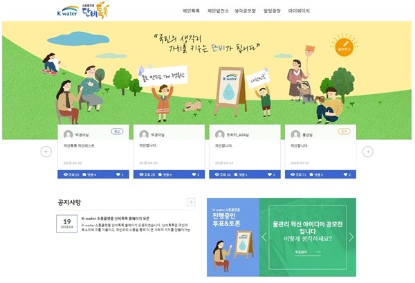 K-water가 온라인을 통해 국민들과 물 관련 아이디어와 의견을 소통, 서비스 혁신을 꾀한다.