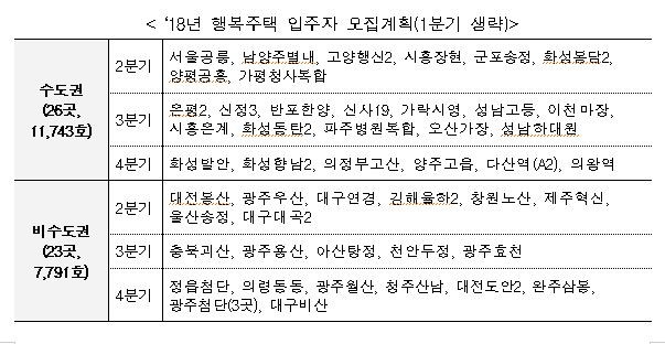 국토부 계획에 따르면 2분기부터 서울·인천·경기등 수도권에 26곳, 비수도권 23곳 등 총 49곳에서 행복주택 추가 모집이 진행된다.
