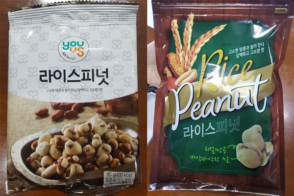 회수 대상은 유통기한이 2018년 12월 26일로 표시된 ‘라이스피넛’(포장단위 400g) 제품과 우농이 제조하고 유통전문판매업체인 GS리테일이 판매한 ‘라이스피넛’(포장단위 80g) 제품이다.