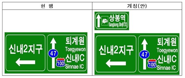 고속국도 도로표지에 사용하는 안내지명에 국민들이 많이 이요하는 고속철도역, 공항 등을 표기할 수 있도록 해 이용자가 보다 쉽게 원하는 목적지를 찾을 수 있도록 개선했다.