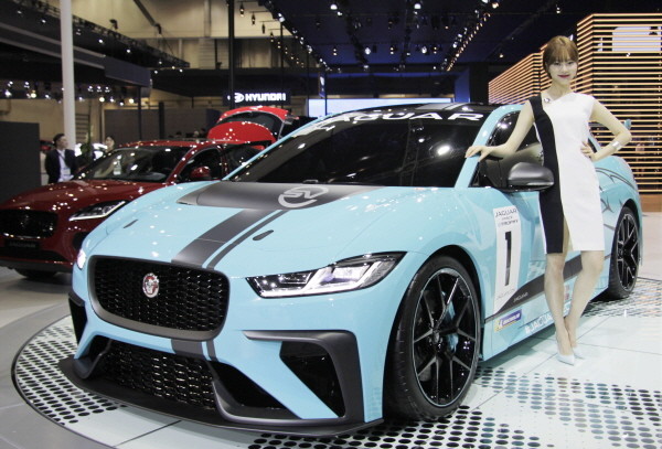 ▲재규어는 F-PACE SVR, eTROPHY & I-PACE 레이스카 등 8대와 랜드로버 New 레인지 로버 롱 휠 베이스 및 전기차 2대 등 총 8대를 전시하고 있다.