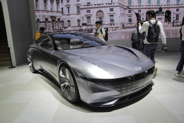 ▲제네시스브랜드는 전기차 기반 GT 컨셉카 에센시아와 G90 스페셜 에디션 등 6대를 출품했다.