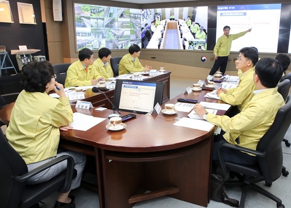 환경부는 12일 오후 2시부터 국토부, 기상청, 지자체 등 9개 기관과 함께 ‘풍수해(태풍·호우) 재난대응 모의훈련’을 서울 동작구 한강홍수통제소에서 실시했다고 밝혔다.