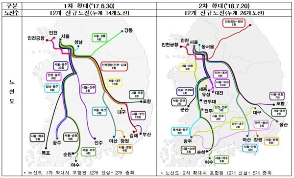 국토부는 이용객 선택권 확대 및 교통편의 증진을 위해 지난해 12월 관련규제를 완화했으며, 그 결과 이번 확대에 200km 이하 노선(서울∼세종, 서울∼유성, 서울∼연무대)이 처음으로 포함됐다.