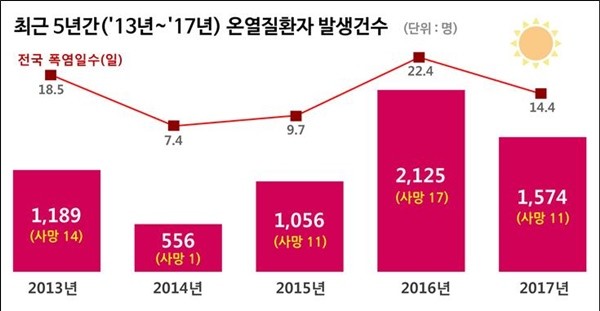 질병관리본부 관계자는 “폭염으로 인한 건강피해는 건강수칙을 지키는 것만으로도 예방이 가능하므로 물 자주 마시기, 더운 시간대에는 휴식하기 등 건강수칙을 준수하는 것이 중요하다”고 말했다.
