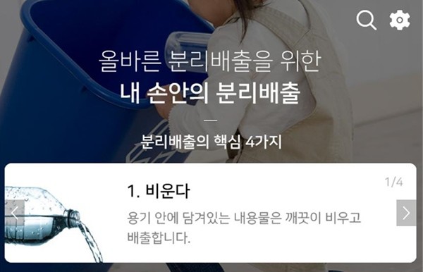 이번 모바일 앱에는 ▲분리배출 핵심 4가지 방법(비운다, 헹군다, 분리한다, 섞지 않는다) ▲페트병 등 품목별 올바른 분리배출 요령 ▲분리배출할 때 헛갈리는 사례 문답풀이 등을 사진과 함께 게재했다.